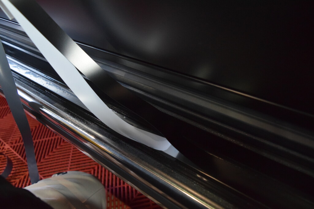 メッキ部分に黒のPPFフィルムを貼って保護をします。      PPFとは?